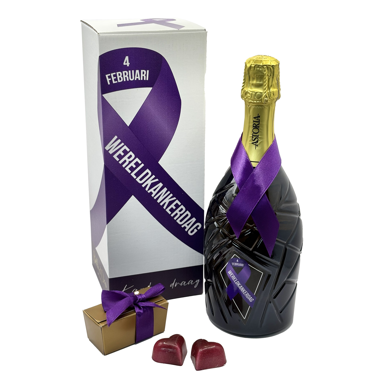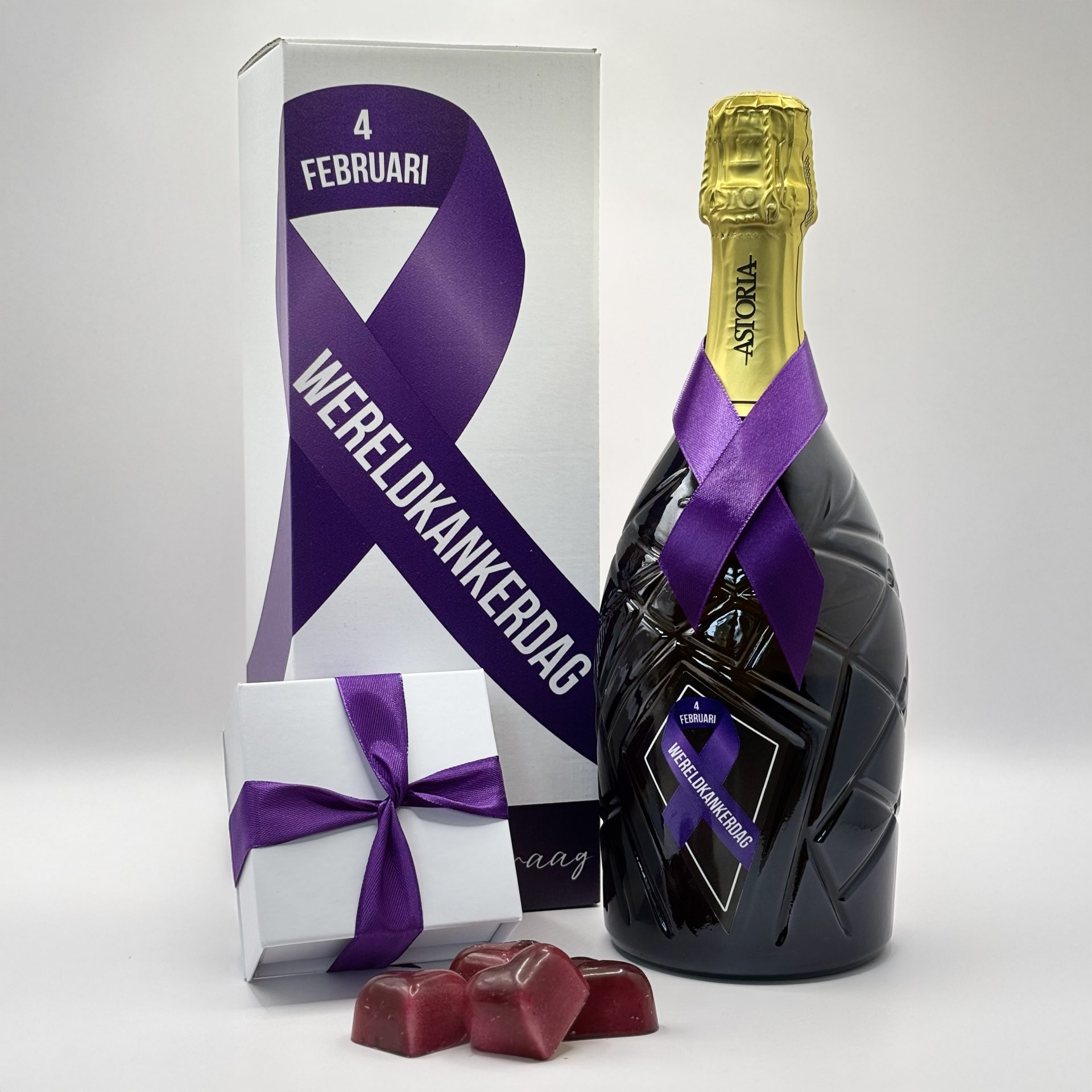 Deze speciale uitgave van de Astoria Galie met paars lint is meer dan een mooie fles, het is een gebaar. Want achter elk glas schuilt een verhaal, van veerkracht, van zorgen voor elkaar, van hoop die gedeeld wordt. Proost op het leven, voor wie vecht, wie herstelt en wie verder gaat.